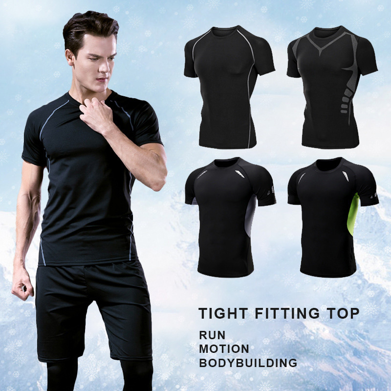 Men's PRO tight short sleeves, fitness running, training clothes, stretchy quick drying clothes, short sleeved T-shirts